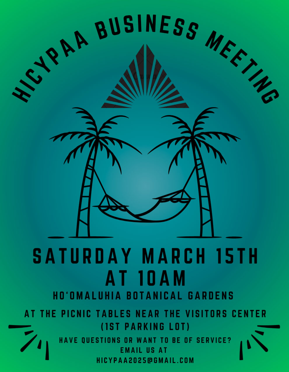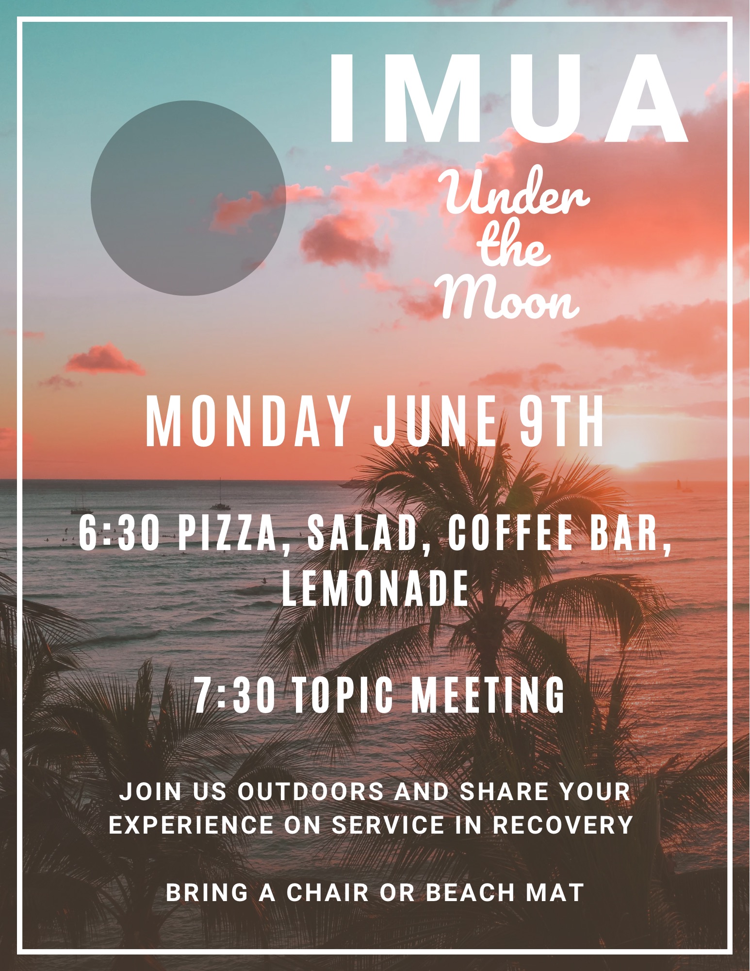 Haleiwa Beach Park 62-449 Kamehameha Hwy, Haleiwa, HI, United StatesMeeting from 12PM-1PM, pot luck & fellowship after. Bring your own chair.